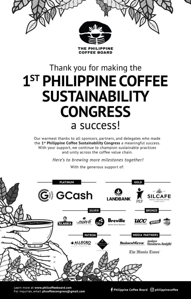 The Philippine Coffee Board extends gratitude to all sponsors, partners, and delegates who made the 1st Philippine Coffee Sustainability Congress a meaningful success.
